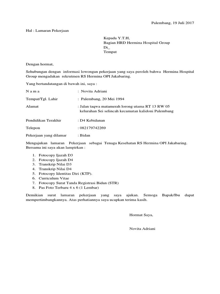Contoh Surat Lamaran Kerja Rumah Sakit - 35 Contoh Surat Lamaran Kerja 2020 Berbagai Posisi Contoh Surat - Tempat dan tgl lahir :